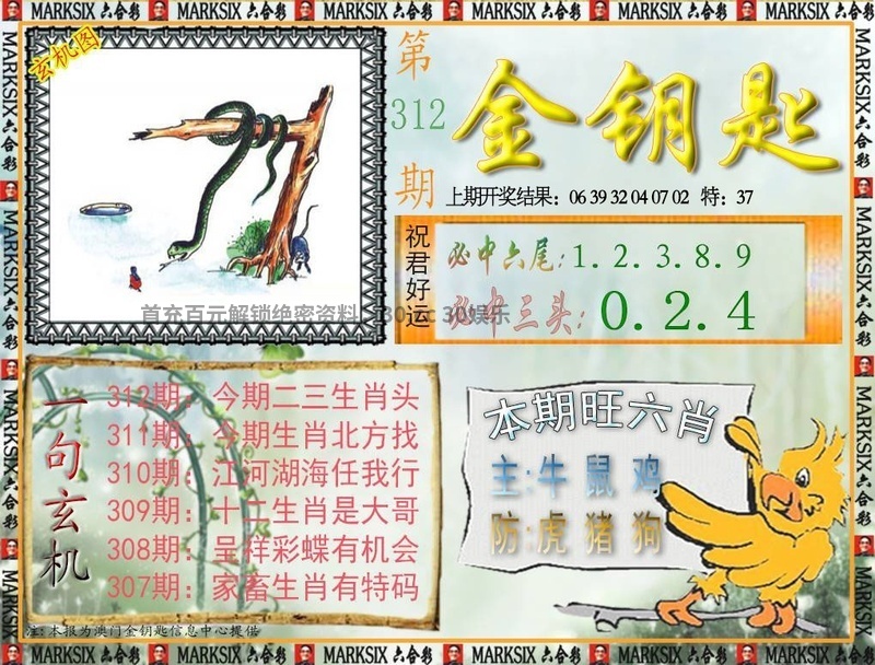 308期:必中⑦肖:牛猴鼠蛇鸡